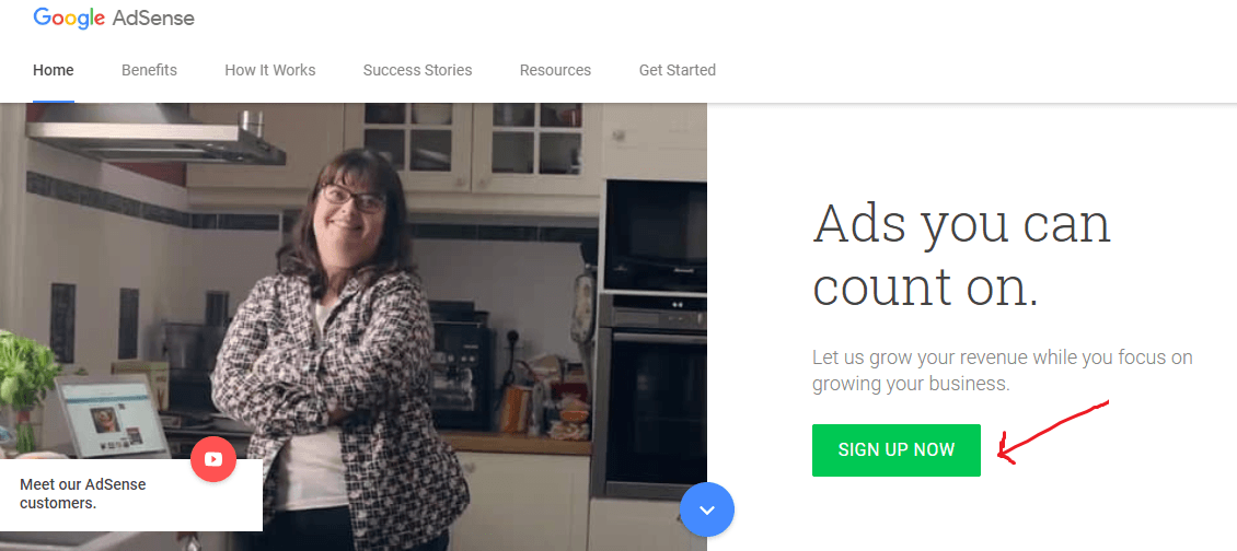 1. The very first thing you need to do in order to apply for Adsense is to visit the official website of Google Adsense. There you need to click on the Sign up button available.